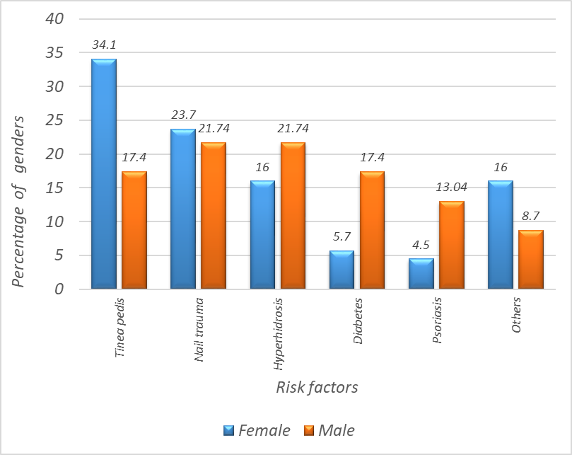 Figure 2. Risk factors and sex distribution among patients with onychomycosis.